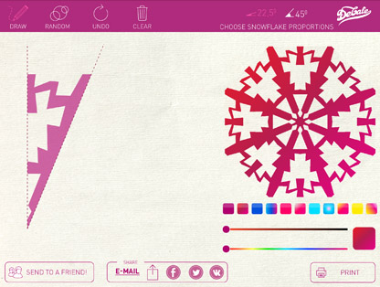 Snowflake is a decoration of any winter holidays and also an irreplacable symbol of any New Year celebration! It is a well known fact that there are no similar snowflakes as there are no similar men. Our application helps you to feel yourself a real creator and also favour your friends and family! Make your own snowflake and share it is so easy!